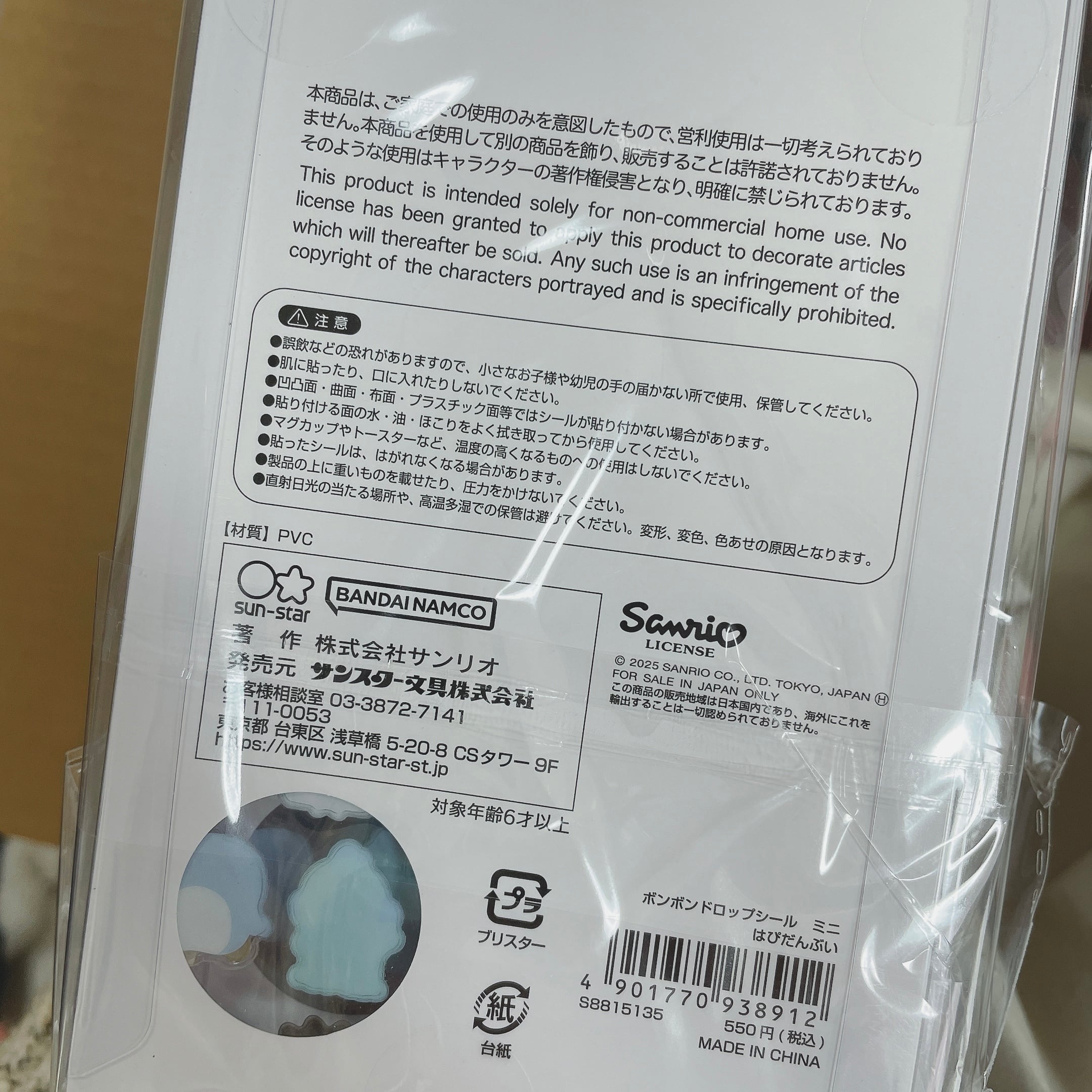 【再入荷完売しました】サンリオ ボンボンドロップシール mini(はぴだんぶいのみ)